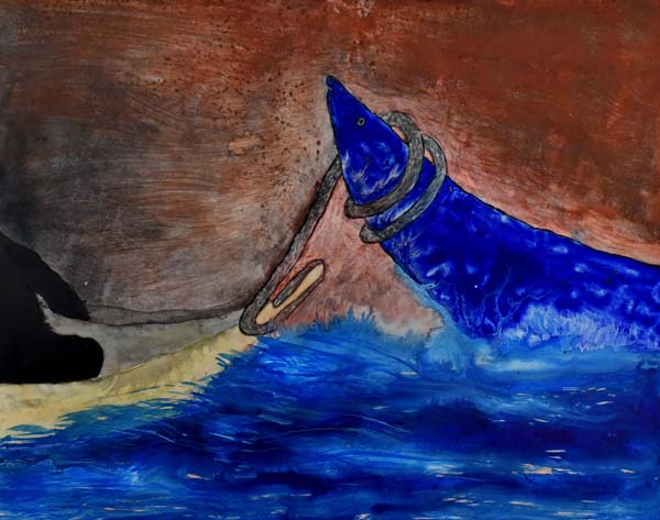 One day Manu, washing himself, reached into the water jar, and a bright little fish came into his hands along with the water. Full of compassion he took care of the fish and put it into a pot filled with water. After a day and a night it had grown sixteen fingers, crying: “O king, save me, save me!” He threw the fish into a big jar, where it grew three hands during one night. Once more the fish was wailing in despair: “Save me, save me, I need refuge from you. Manu threw the fish into the Ganges where it kept growing, and finally the master of the earth brought it to the ocean.