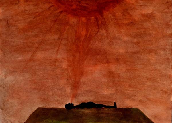“I am going to show you,” the mother said, and she went with her daughter up into the mountains. “Please, lie down,” she said, and the girl was lying down as her mother had done. All day the girl lay on the mountain and the next morning before sunrise, her mother came and lay down upon her own daughter while she looked at the sun. Then she sprang up, quickly, and thus the girl conceived of the sun. The child she bore was the son of the sun, Sekala Ka-amja.